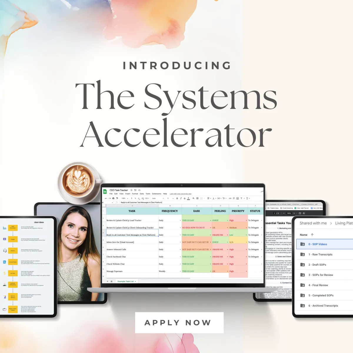 You'll receive customized Freedom Sprints to help you optimize the most critical areas of your business (think Lead Follow-Up, Client Onboarding, Client Communications, Hiring, Team Onboarding and Training... the list goes on).